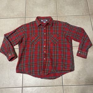 Featuring a colorful plaid pattern, button accents, and long sleeves, this shirt also has pockets for added convenience. It's a must-have for any hipster, grunge, or retro-inspired wardrobe, and it's made in the USA with high-quality craftsmanship. Add this Big Mac JC Penny shirt to your collection today! Shirt has slightly shrunk, so refer to measurements for sizing.
