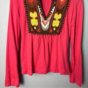 Tory Burch Pink Embroidered Boho Top