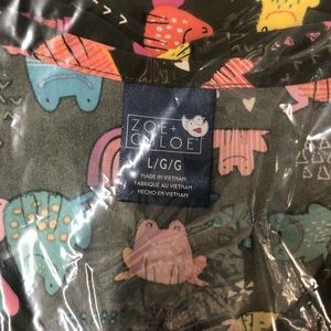 NWT Zoe + Chloe Army Green Frog and Rainbow pattern short sleeve scrub top