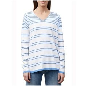 Lafayette 148 New York Striped V-Neck Sweater Womens Size Small