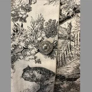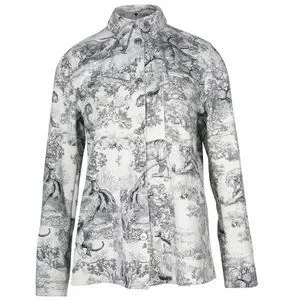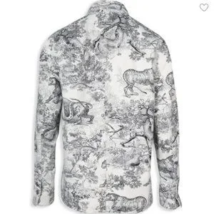 This Dior shirt features the emblematic and classic Toile de Jouy motif. Cut in white and black cotton twill, the design is embellished with a button closure and two pockets adorn the front. The lightweight and refined shirt can be worn with the Dior Toile De Jouy pants for a total look.