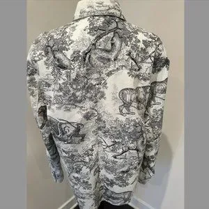 Christian Dior Toile De Jouy Button Front Long Sleeve Shirt in White and Black Cotton