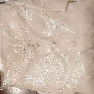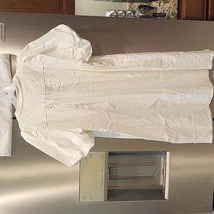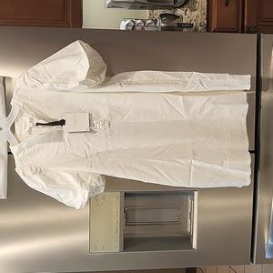 New with tags white Carley dress by pomander. Side pockets, stretch material, fabric covered buttons so cute!