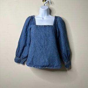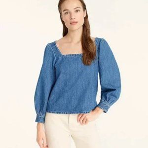 J. Crew Square Neck Chambray Top Puff Sleeves Women's XXS