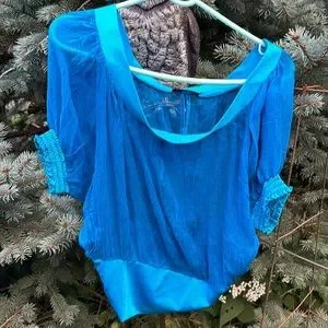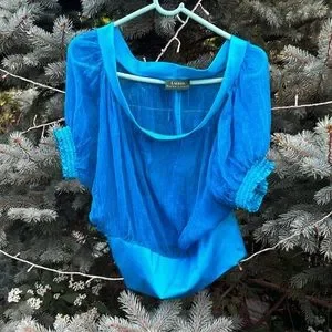 Ralph Lauren elegant transparent women's blouse with a wide neckline. Short sleeves gathered in elastic. Waist with wide elastic band. Excellent condition. Once worn