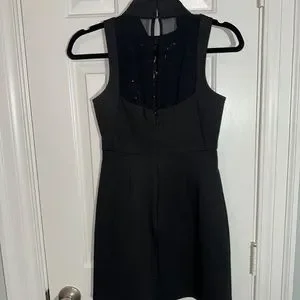 BCBG GENERATION DRESS Size XS Sequins Copper & Black Mini Dress Mock Neck Zips at Back fastens at Neck. Worn Once. Dress is stretchy. Chest 15" Waist 12.5" Hips 17" Length 30.5"