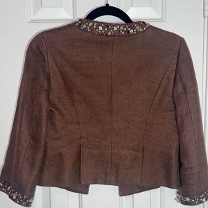 BCBG MaxAzria Jacket Brown cropped with multi color stones and quarter sleeves. Size XS. Like New condition!