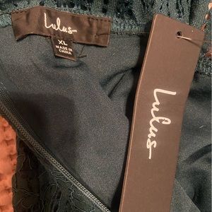 NWT Lulu’s Remarkable Forest Green Sheer Lace Short Sleeve Mini Dress