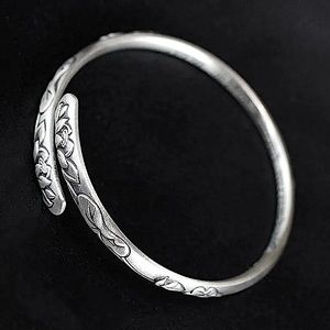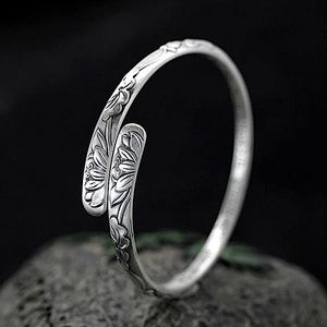 Sterling Silver Resizable Adjustable lotus flower bangle cuff bracelet.