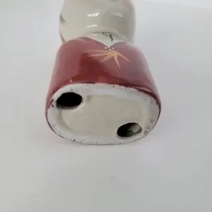 Hand painted vases similar in style to Gemma Taccogna’s folk art paper mache works. The styling of the faces and clothing is also reminiscent of Tudor or Elizabethan nobility.