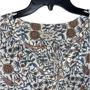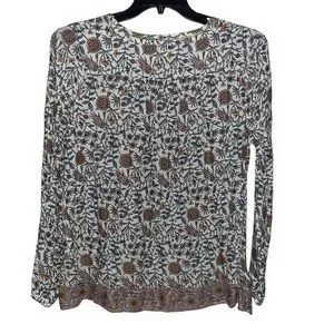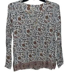 Lucky Brand floral top with drawstring neckline, long sleeve