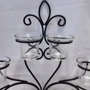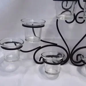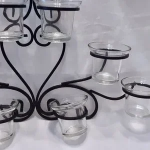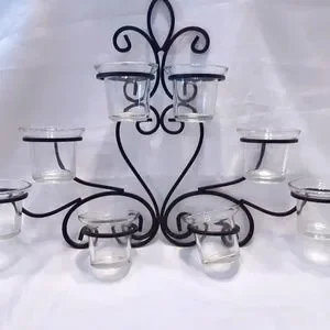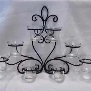 This wall sconce holds eight votives and works with any decor. Measures 17" x 12".