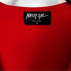 Nasty Gal brand dress. Red. Long sleeved. Gathers in the front. Small (nearly unnoticeable) stain on the back near shoulder blade. (See second picture) Size S. Length is 31”. No tears, pilling, pulls or holes.