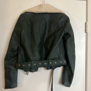 Never worn. Perfect condition. Zipper sleeves. Zipper pockets. Zipper collar with detachable Sherpa. Belted. Forest green color.