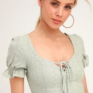 NEW Lulus Rapunzel Sage Green Eyelet Lace Mini Dress