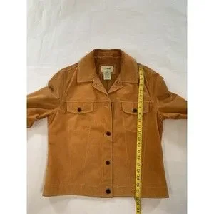 LL Bean Leather Jacket Womens Medium Regular Button Up Chest Pockets Suede