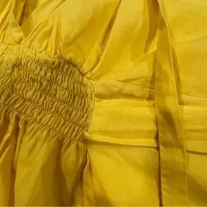 So sunny and bright, this top is beautiful. Lightweight with lovely smocking details and ties at the neck and waist. ๐