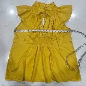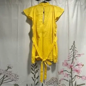 B & Lu Yellow Flutter Cap Sleeve Cotton Shirt with Smocked Detail and Ties 3XL