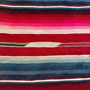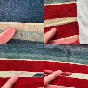 Vintage Wool Serape 62" Fringed Runner Blanket Rainbow Native Mexican American
