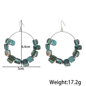 Bohemian Ivory & Brown Abalone Shell Beaded Dangle Hoop Earrings NEW