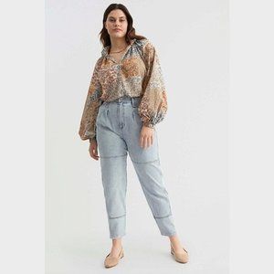 Witchery Santorini Print Raglan Blouse Top Size 14 Balloon Sleeve Cotton Boho