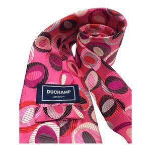 DUCHAMP LONDON Pink Geometric Silk Tie Hand Made In England 61"/ 3".1/2 EX COND