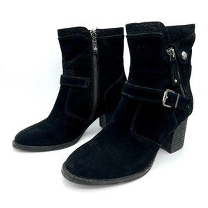 Blondo Waterproof Suede Leather Heeled Moto Booties Chunky Heel Winter Boots 7.5
