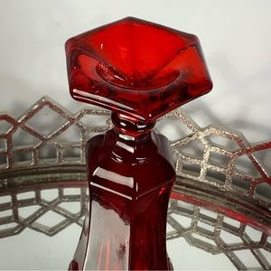 SOLD. Fostoria Coin Dot Vase Ruby Red Ruffel Top Vintage