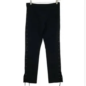 Wolford solid black "Biker Trouser" leggings. Features: • High rise • Lace up side • Ribbon tie at ankle • Flat front • Hidden button • Soft and stretchy • Size 34• 50% cotton, 43% polyamide, 7% elastane