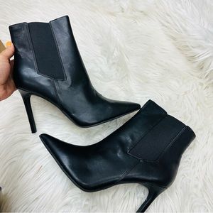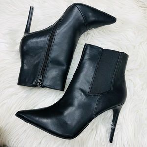 Pointed-toe booties with inner ankle zipper