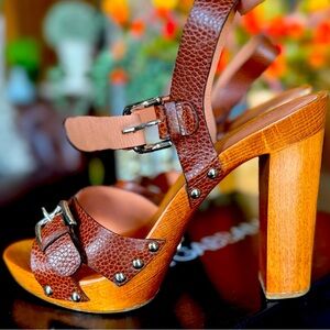 Dolce & Gabbana Cognac brown leather sandals heels with studs western vibe boho
