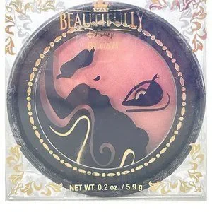 The elegant black and gold container features silhouette artwork of Snow White and the Wicked Queen on the window lid through which you can see the dramatic shade of blush.