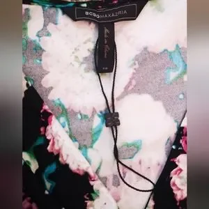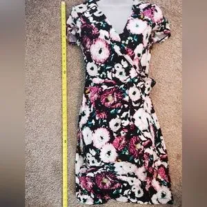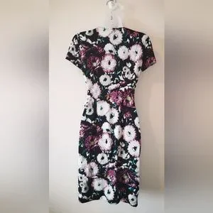 BCBG MaxAzria X-Small Short Sleeve Pink Floral Print Faux Wrap V-neck Dress