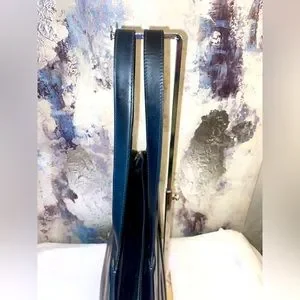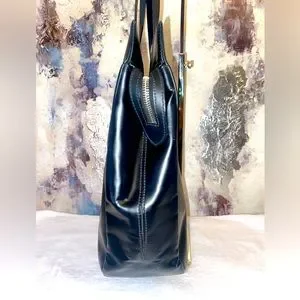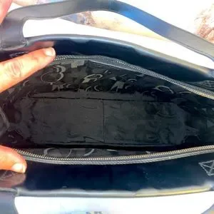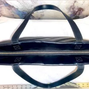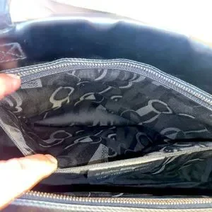 Embossed shoe logo on front of bag. Slight superficial scuffs and scratches outside. Slight wear on hardware. Zippers glide with ease. Corners are gorgeous with slight wear