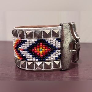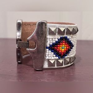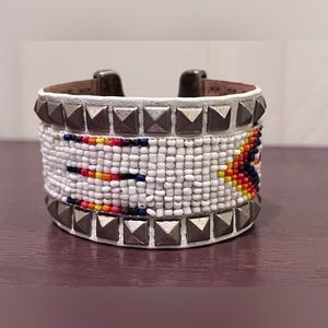 White cuff has SOUTHWESTERN MOTIF on genuine leather and is stamped