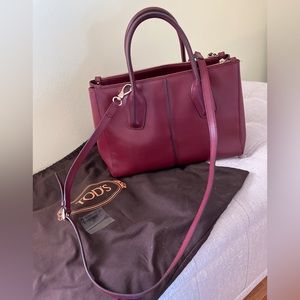Authentic Tod’s D-Style Burgundy Leather Tote & Shoulder Bag