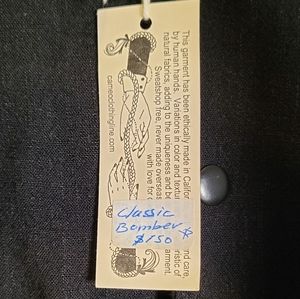 New With Tags Cameo black linen bomber style jacket size XSmall. This stylish new linen jacket is designed in the classic bomber style with a loose fit. Perfect for lighter hearted punk rockers, or just as a tough black jacket to keep you warm in colder weather. Linen is known for its toughness and breathability, creating high-quality material that lasts longer than other fibers and doesn't degrade like synthetic fibers do.