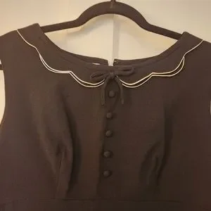 🖤Adorable 60's little black dress. Features a scalloped collar with white trim, a bow detail in the middle and covered buttons.