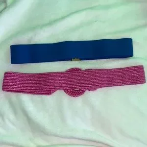 ❤️ Vintage Hot Barbie Pink Woven Stretch and Blue Stretch Belt with Gold Clasp