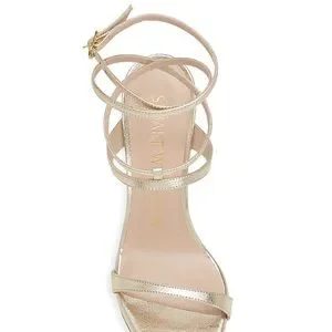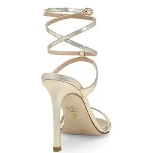 Stuart Weitzman Ellsie Ankle-Wrap Metallic Leather Sandals