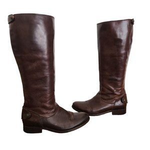 Frye Melissa Back Zip Knee High Riding Boots Leather Cognac 6