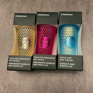 Starbucks Set of Three Studded Tumbler Keychains/Ornaments- NWT
