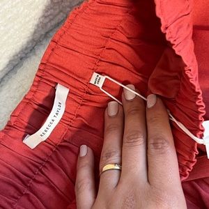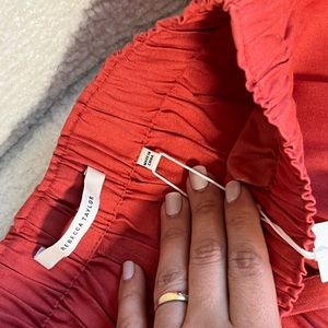 These pajama shorts are designed with a drawstring waist and breathable linen-blend fabric. These are size Extra small, they can fit a bigger size since they are stretchy. With a beautiful Coral Color looks more like a peachy color in person.