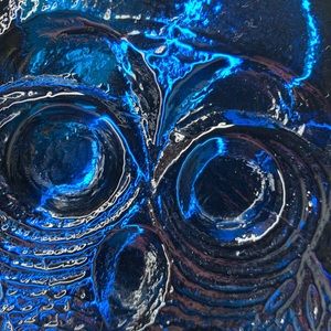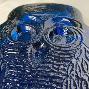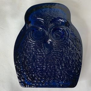 Vintage 1968 hard to find BLENKO peacock blue glass Owl bookend / paperweight #6813 by Joel Myers Milton. Bookend is 6 3/4” tall x 5 1/2” wide at the widest point. Owl is very heavy!! No Chips or cracks noted. Some very light scuffs and air bubbles noted within the glass….part of the manufacturing process. Incredible piece! Thanks for looking!
