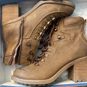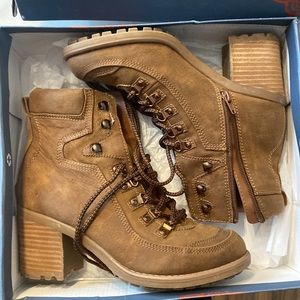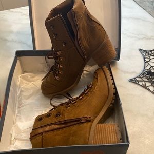 Carlos Santana heel boots side zipper closure with lace up laces in front