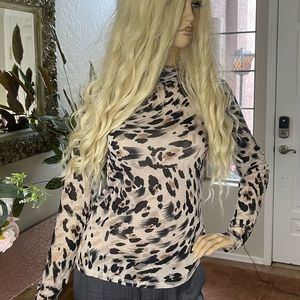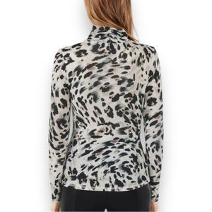 This printed turtleneck is crafted from a lightweight stretch fabric that makes for a perfect everyday basic.