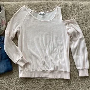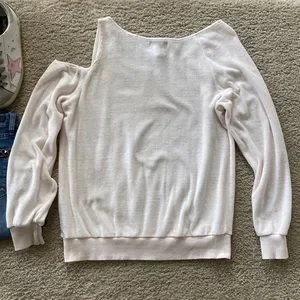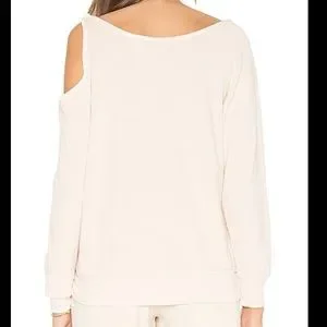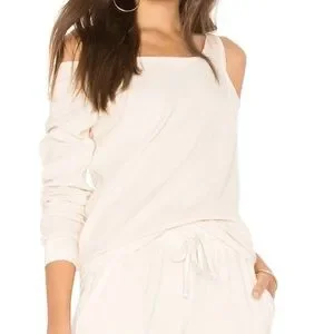 Young Fabulous & Broke Jacee Velour Top in Cream. Fabulous wardrobe staple! Easy to throw on and go. Super soft. One shoulder cold shoulder. Long sleeves. Laying flat approx 24.5” shoulder to hem, approx 20” pit to pit. 75 cotton 25 polyester. Size S. Excellent condition.
