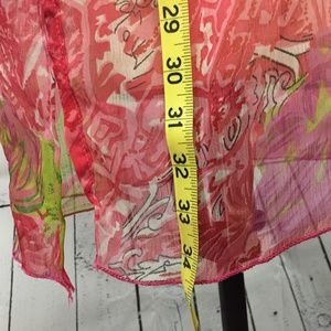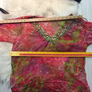 Sahiba Women's Red Floral Top Sequin Trim semi see through tie waist ~me…