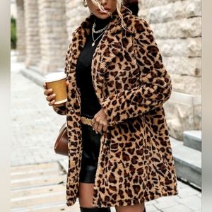New Luxe Leopard Print Faux Fur Fluffy Coat Jacket