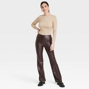 Women's High-Rise Pull-On Flare Pants - A New Day Dark Brown L